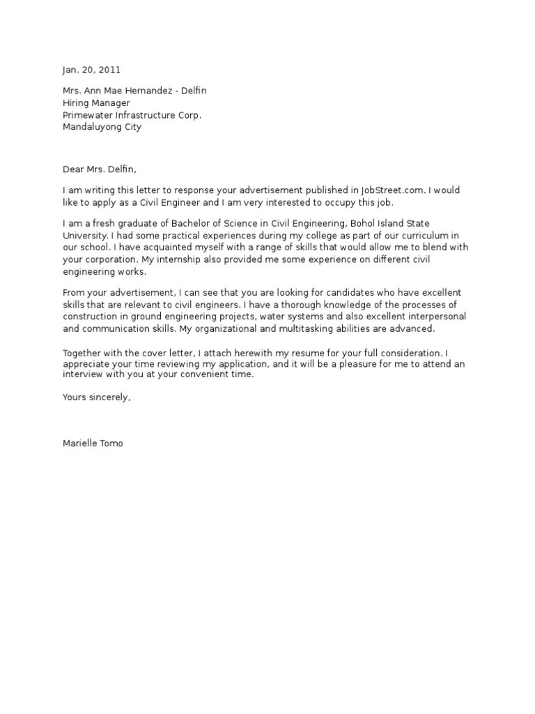 Cover Letter For Engineering Fresh Graduate : Lu Xu Cover Letter / Resume formats chronological resume functional resume summary, objective.. A complete guide with step by step expert tips. 02.09.2021 · the best way to start writing a cover letter in 2021 is to check out examples of good cover letters. Cover letters should be around three paragraphs long and include specific examples from your past experience that make you qualified for the position. Build professional cover letters in a few simple steps by using our free cover letter builder. The cover letter is usually the first item an employer reads from you.